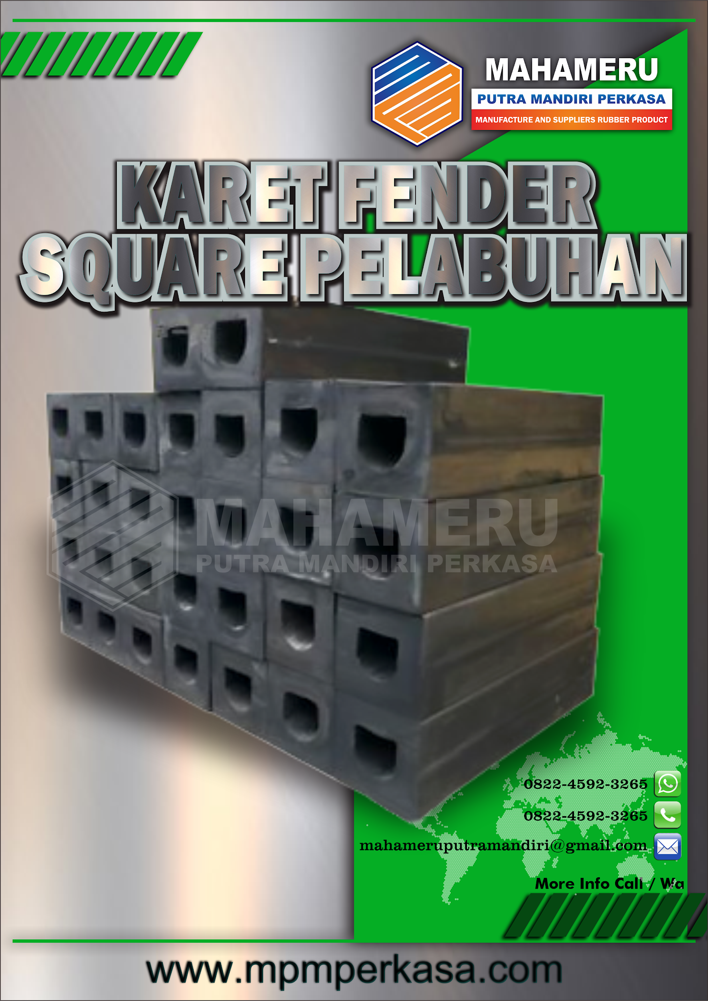 Rubber Fender Square (kotak) merupakan karet fender yang dapat dipergunakan untuk berbagai macam aplikasi